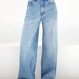 - Features : Womens casual wide leg pants features high waist, straight legs, pockets on the front and back, fashion ripped knee distressed details and classic solid plain jeans, create a vintage 90s streetwear.