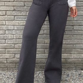 Solid Button Detail Flap Pocket Straight Leg Pants
