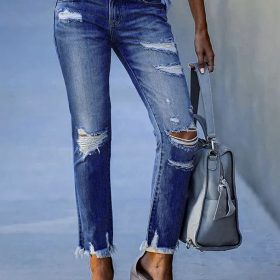 • Design: The boyfriend jeans feature mid rise ,fashion raw hem,destoryed broken holes design, zip fly with button closure,classic five pockets.
